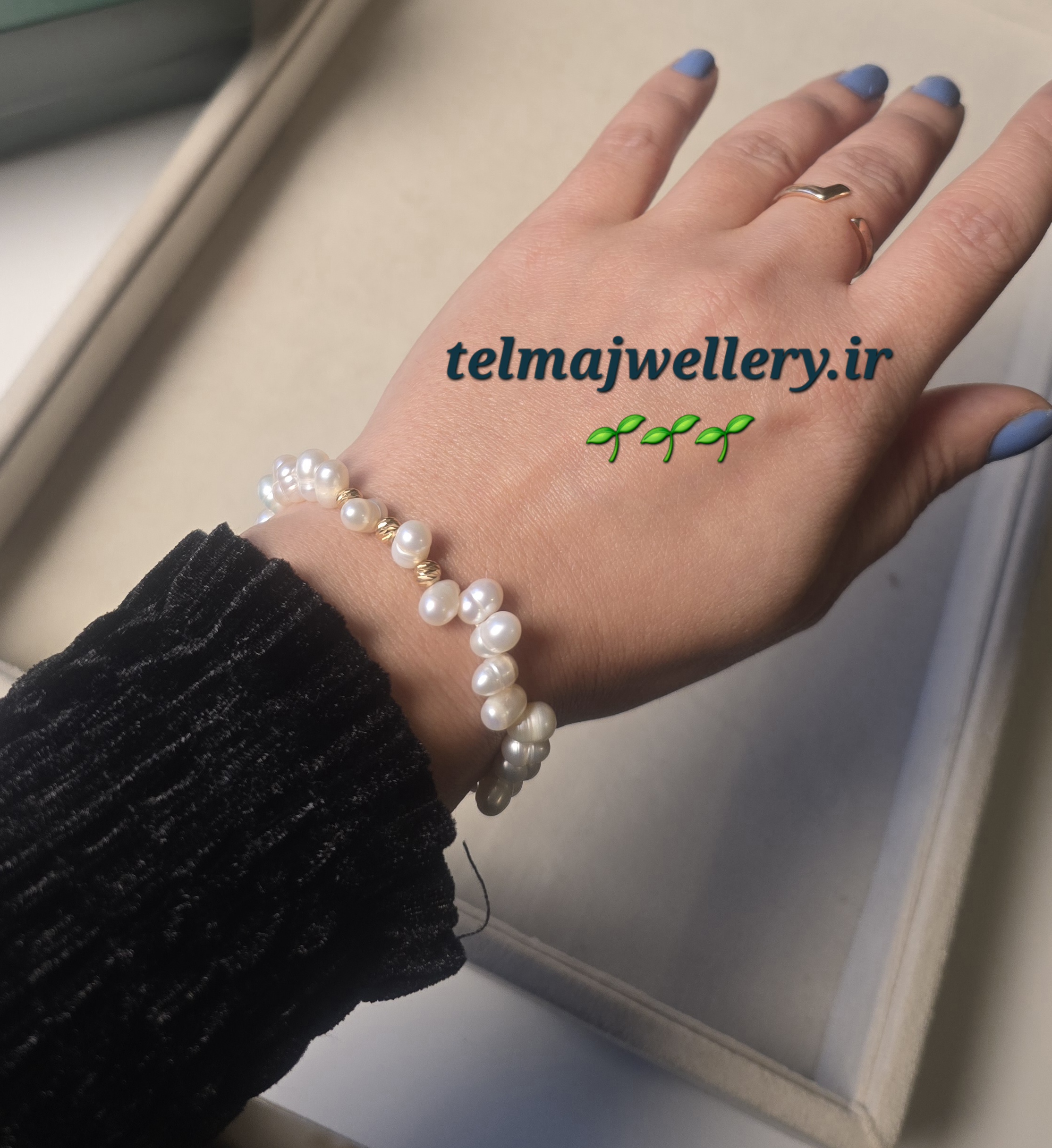 دستبند مرواریدی با گوی البرنادو طلای ۱۸ عیار