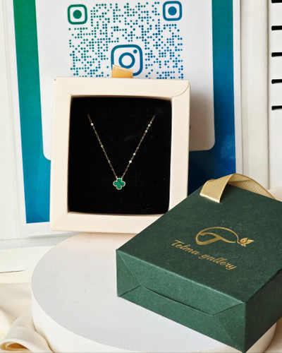 پلاک گل و زنجیر ظریف طلا ۱۸ عیار