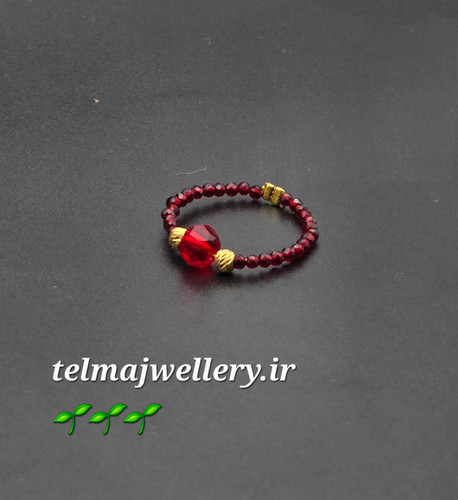 انگشترطلای ۱۸ عیار با گوی البرنادو و سنگ جید قرمز و سبز
