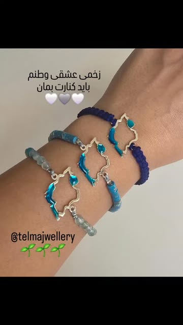 دستبند نقره طرح ایران با رزین آبی